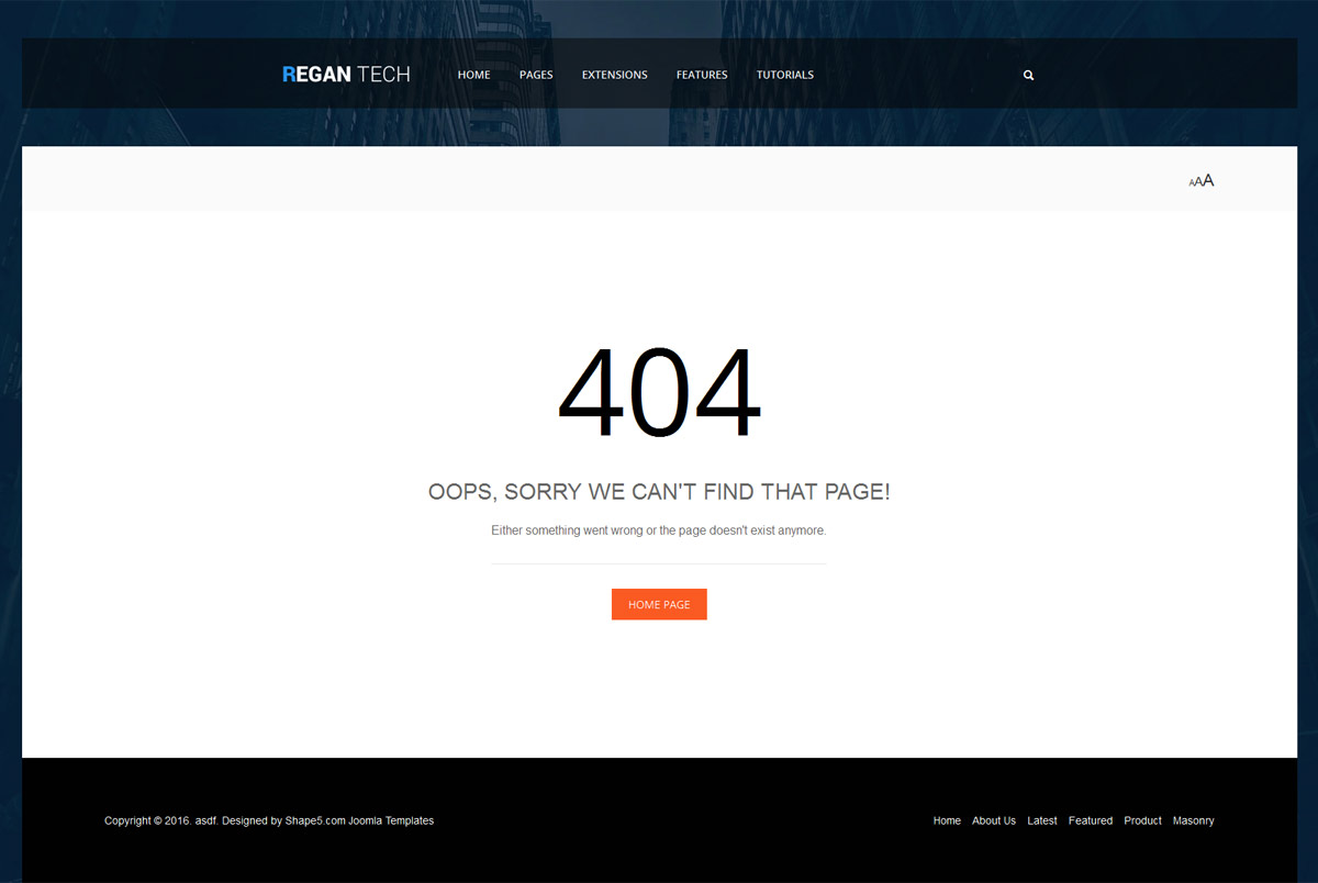 This design comes with a matching 404 page for users who reach an unrecognized site url. Below is a screenshot of that link or you can see it live here.
